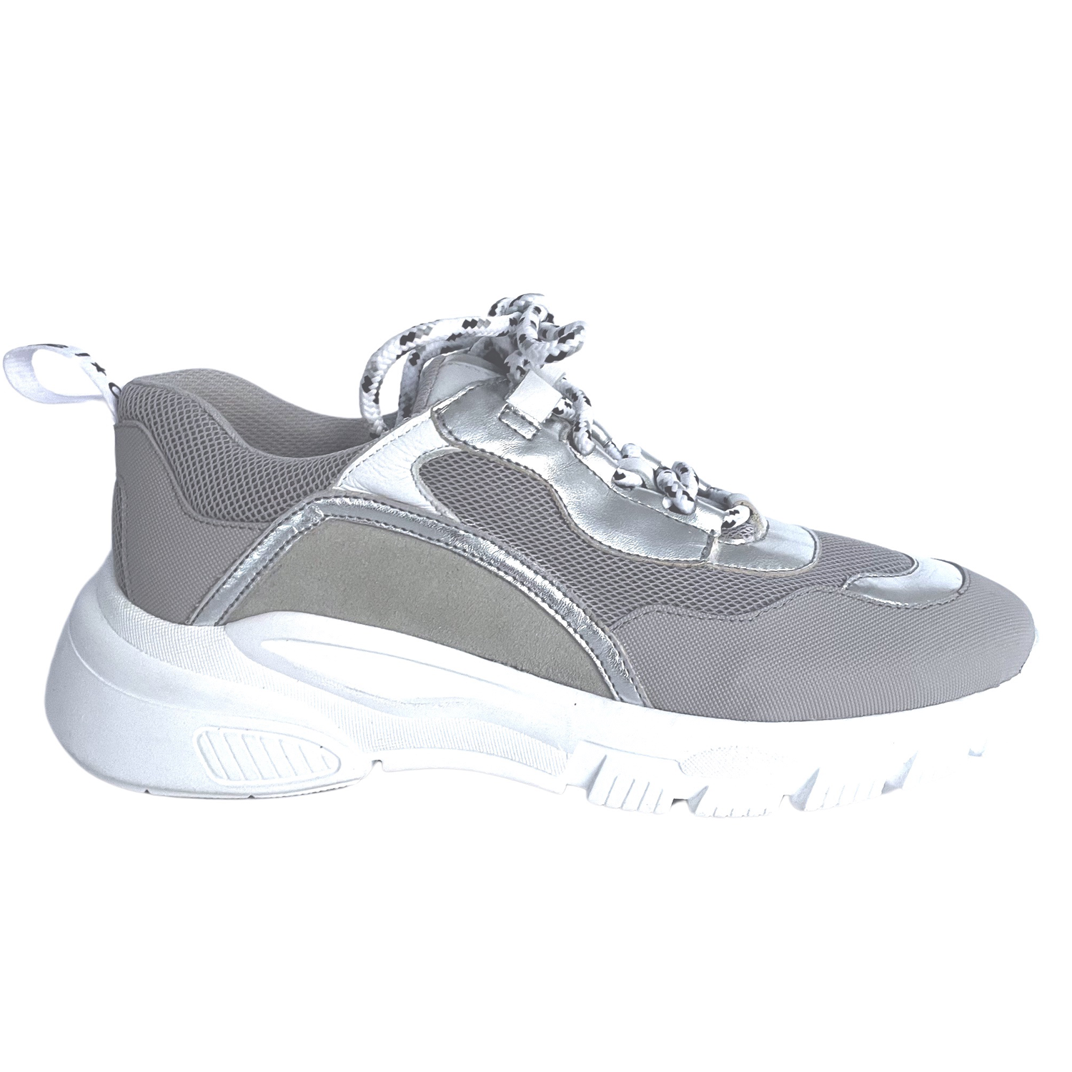 Dieser clic sneaker silbergrau ist mit seiner chunky Sohle hochmodern und obwohl ein Kinderschuh auch für schmale Damenfüße geeignet.